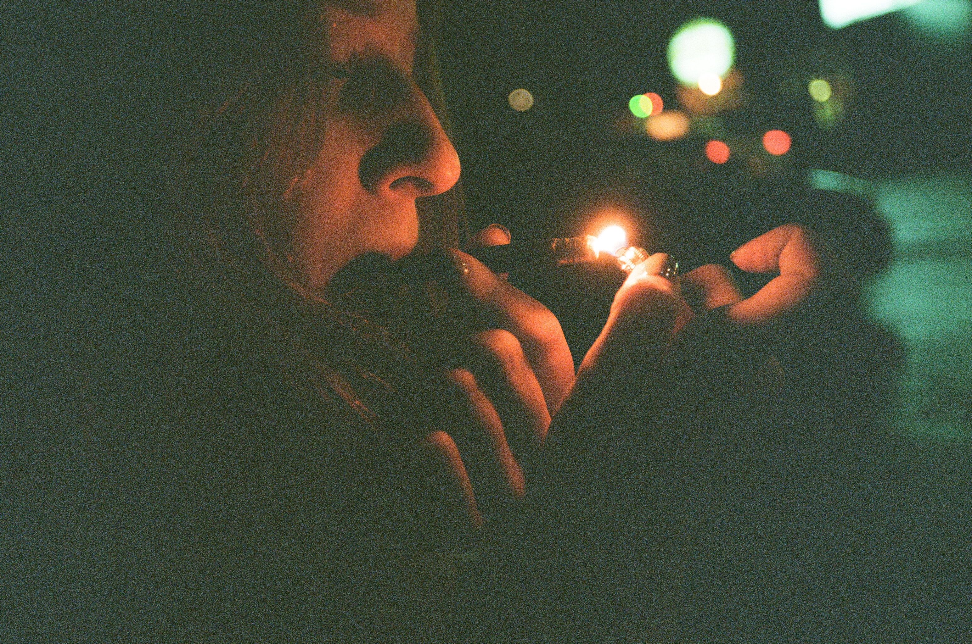 35mm, film, Fire, Night, Nightlife, photography, Redheads, Smoking
