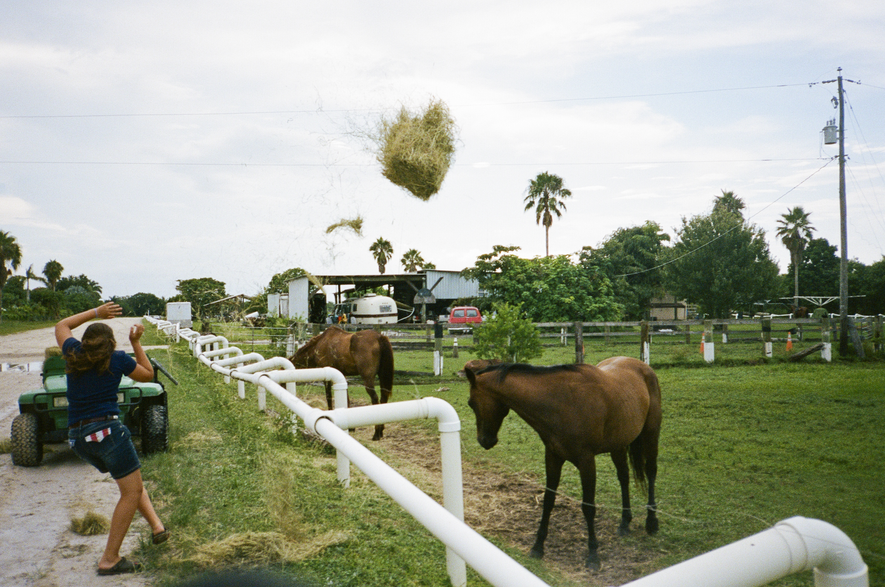 Back home on the ranch in Davie, FLA where you swim your horse to beat the heat, have the teenage boys wrestle for evening entertainment and eleven-year-old girls can toss bales fifteen feet high.