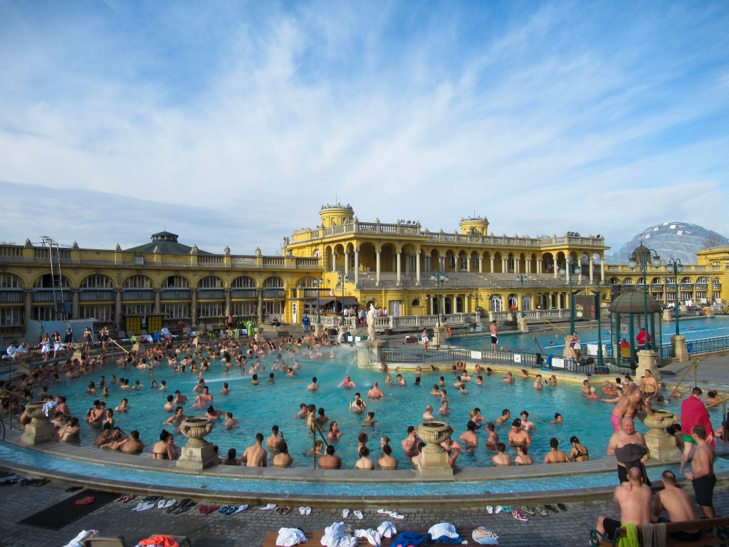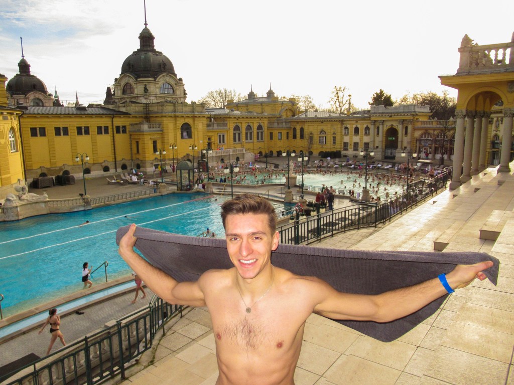 Our first stop in Budapest was the Szechenyi Spa & Baths, the largest spa in Europe. Imagine Versailles, but switch the gardens for hot spring pools. We proceeded to sweat and cold dunk on repeat with trips to the outdoor pools in the interims for heavy waterfall massage pouring out of ancient fountainheads. Groups of excited people were celebrating their bachelor(ette) parties there as the bar was selling mulled wine and the shining sun kept everyone’s spirits bright. That evening there was to be a Sparty, the infamous spa party, but Jake and I decided as neat an idea as that was it could become a literal cesspool of germs. We decided to go dancing instead.