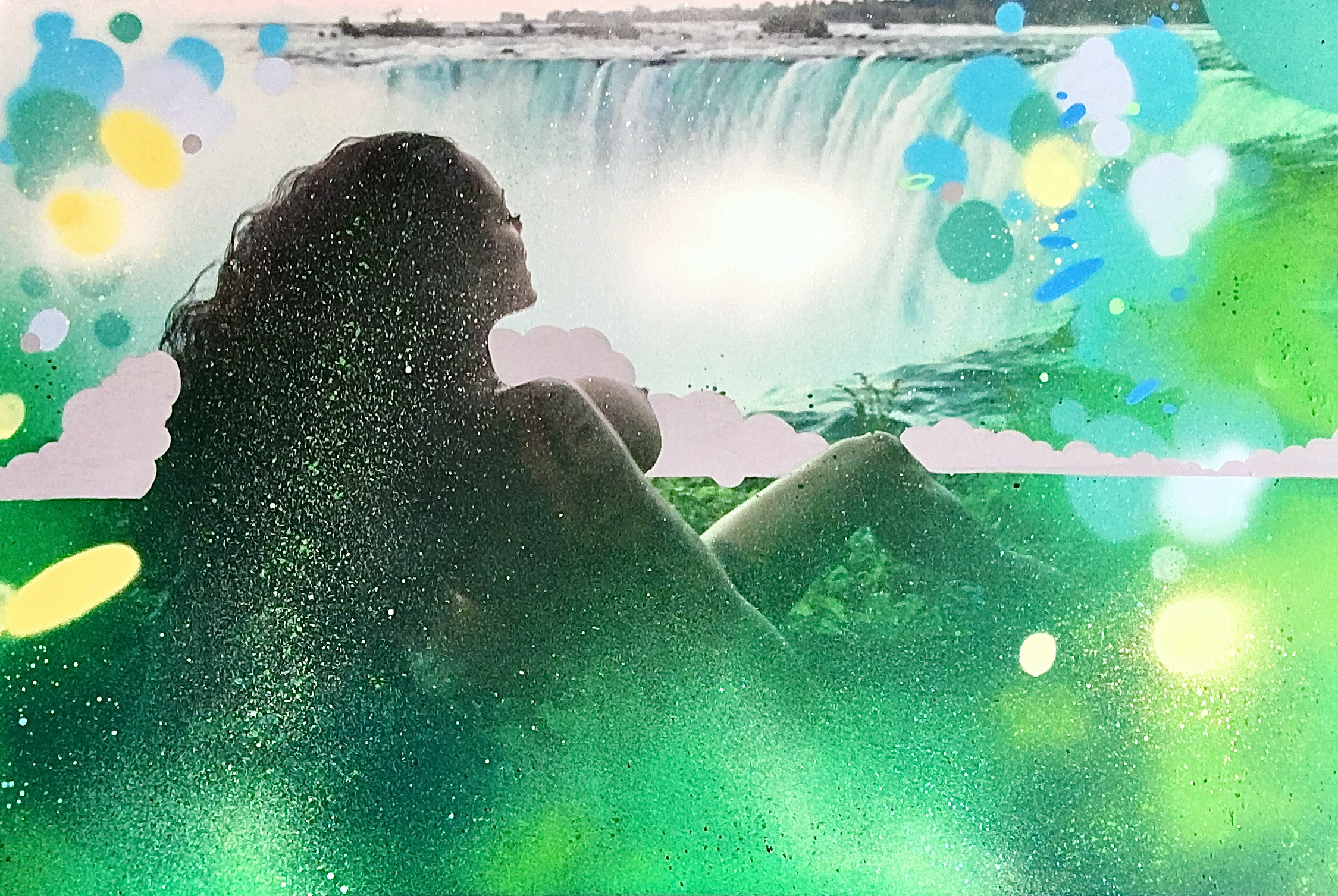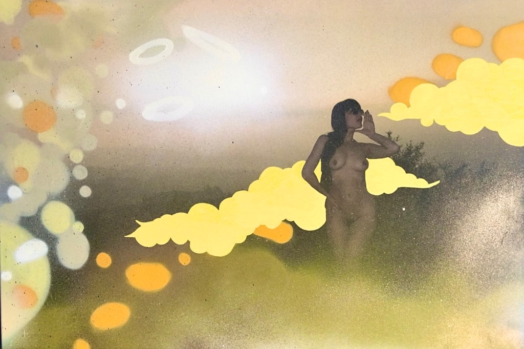 We were bound to get up to some kind of collab this Summer what with all this time on our hands as we sat back and waited for the world to open up again. My fiancée is a very talented aerosol artist / graffiti king who writes ‘FATHOM’ all over the world, but especially all over Toronto. He was contacted by a woman over Instagram who was admiring his work on a walk in Roncey with her kids. She wanted a custom piece. One thing led to another and we all settled on a massive Fathom canvas with a Nike, Goddess of Victory ink transfer on top. The commission got our creative juices flowing. Soon canvas prints of Goddesses Bia and Pheme were glowing with Fathom’s touches of paint. The results delight me and I hope you too. They are all one of a kind. Should we do more? xo