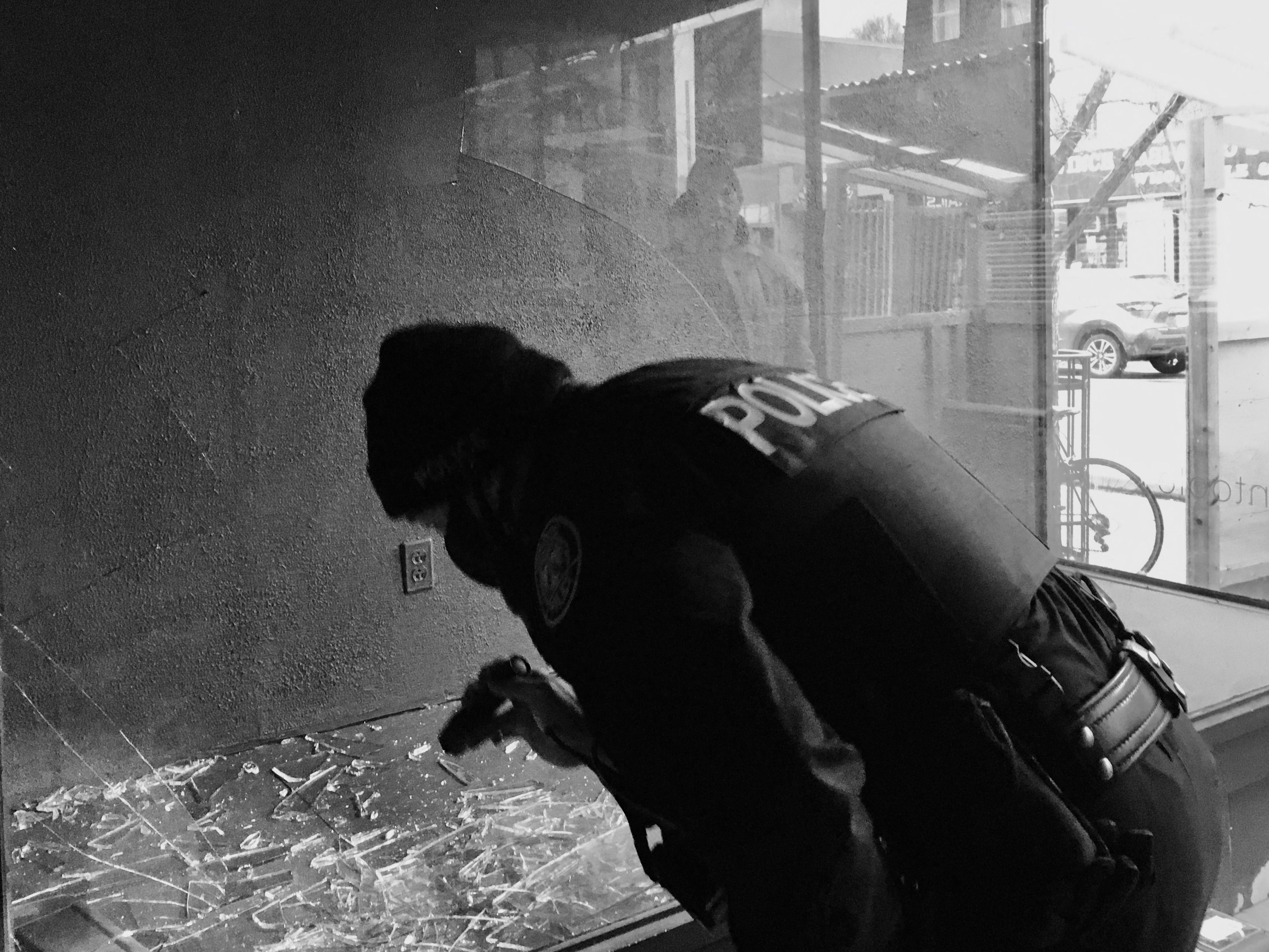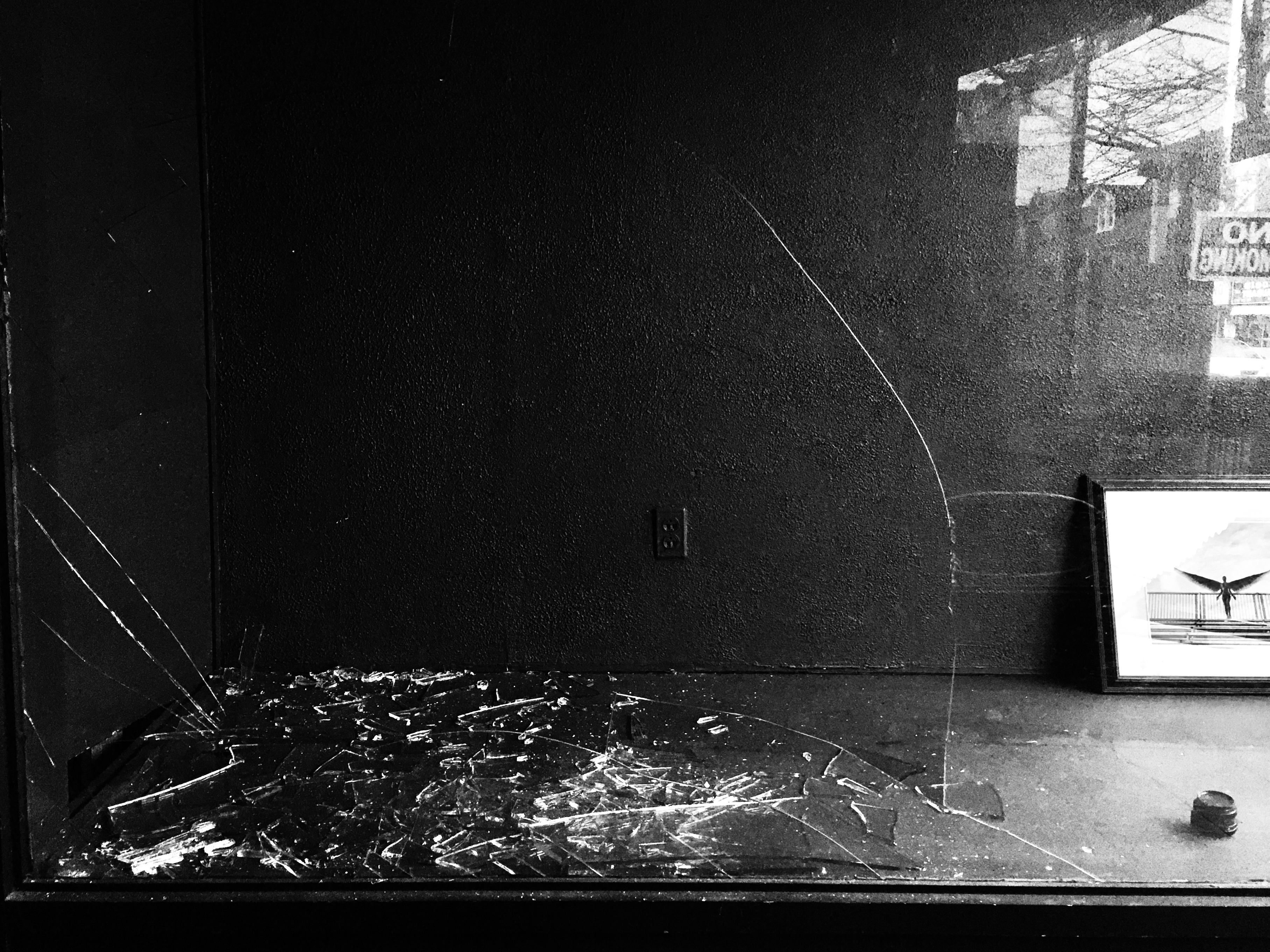 Unprofessional Interlude #2. Bloordale Art Thief On Dec. 28th we got home from a glorious Christmas getaway to a completely smashed in front window and two pieces of stolen art. The two collaborations pictured above, 'Bia Remix' and 'Pheme Remix,' are one-of-a-kind ink printed on canvas with aerosol and acrylic paint. They are 2 x 3 ft and very special to us. If anyone has any information on their whereabouts please let us know. Cash reward!