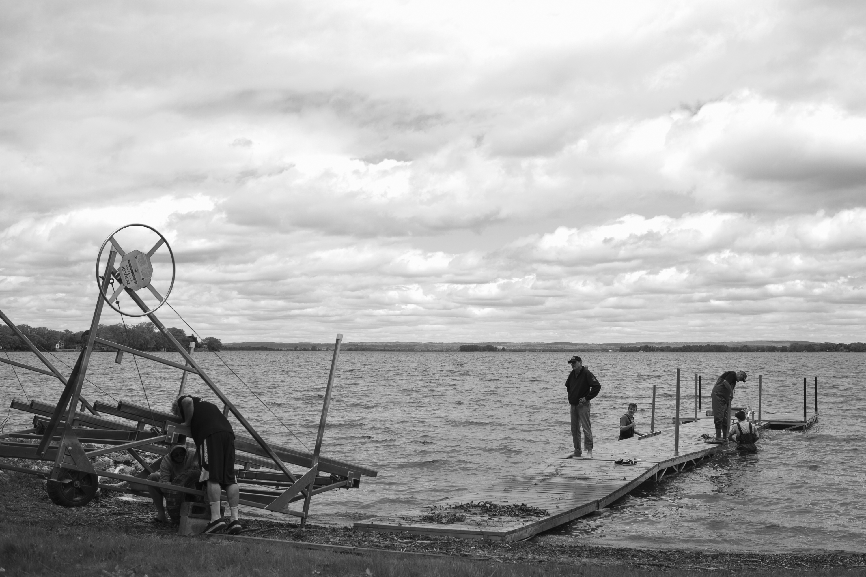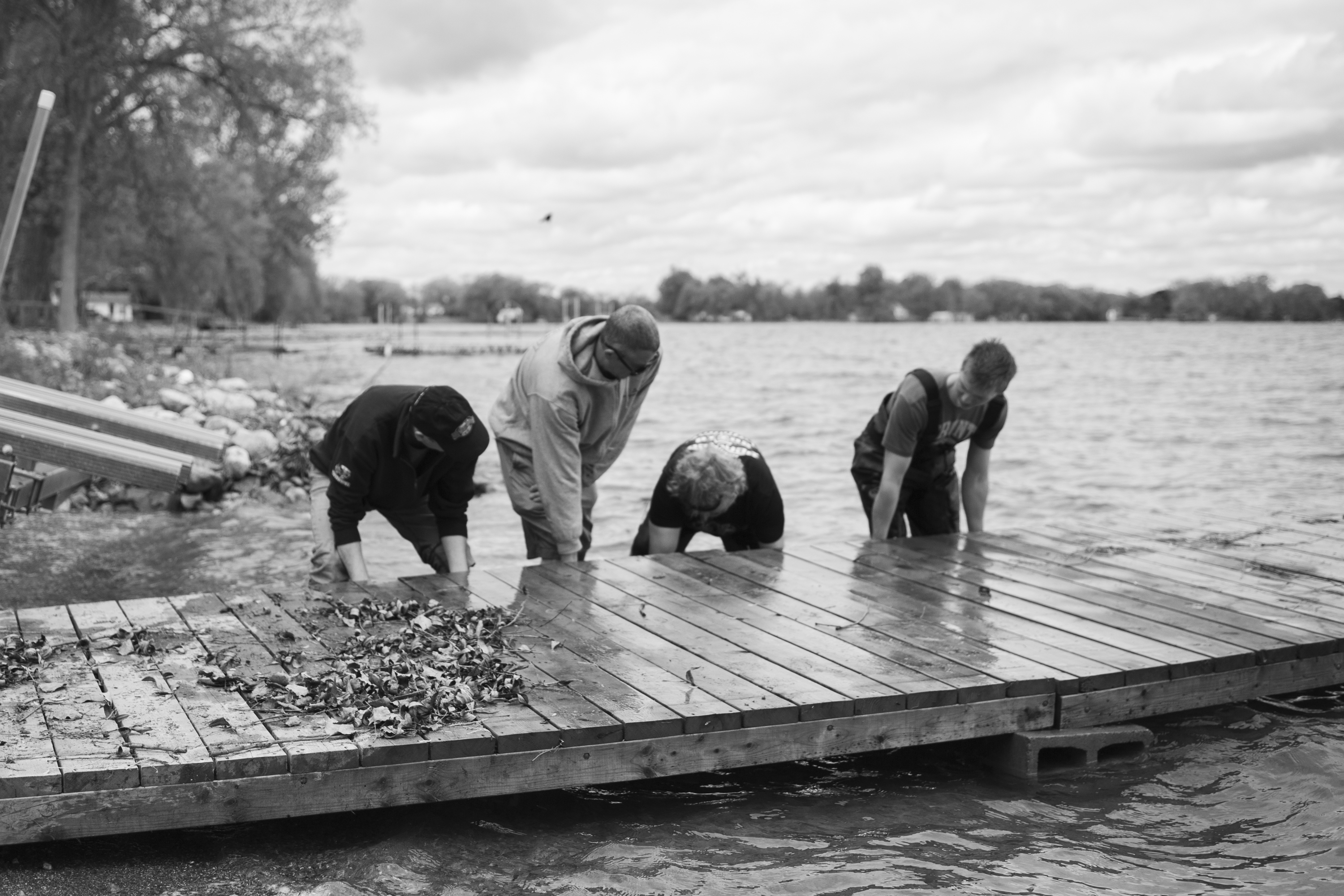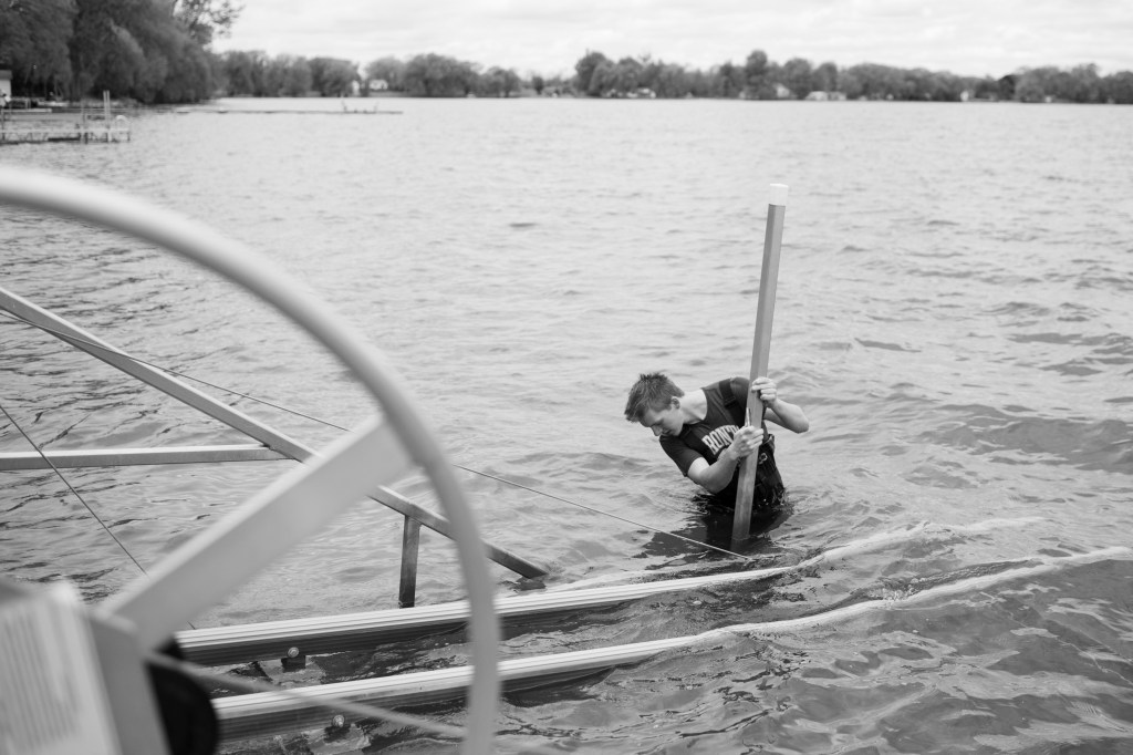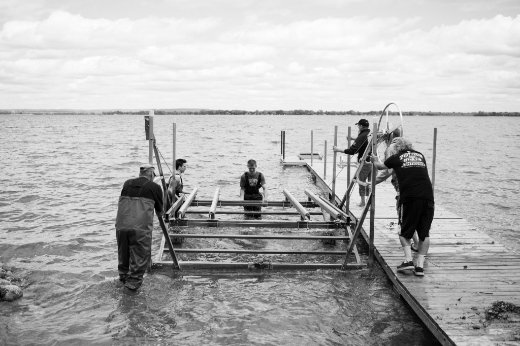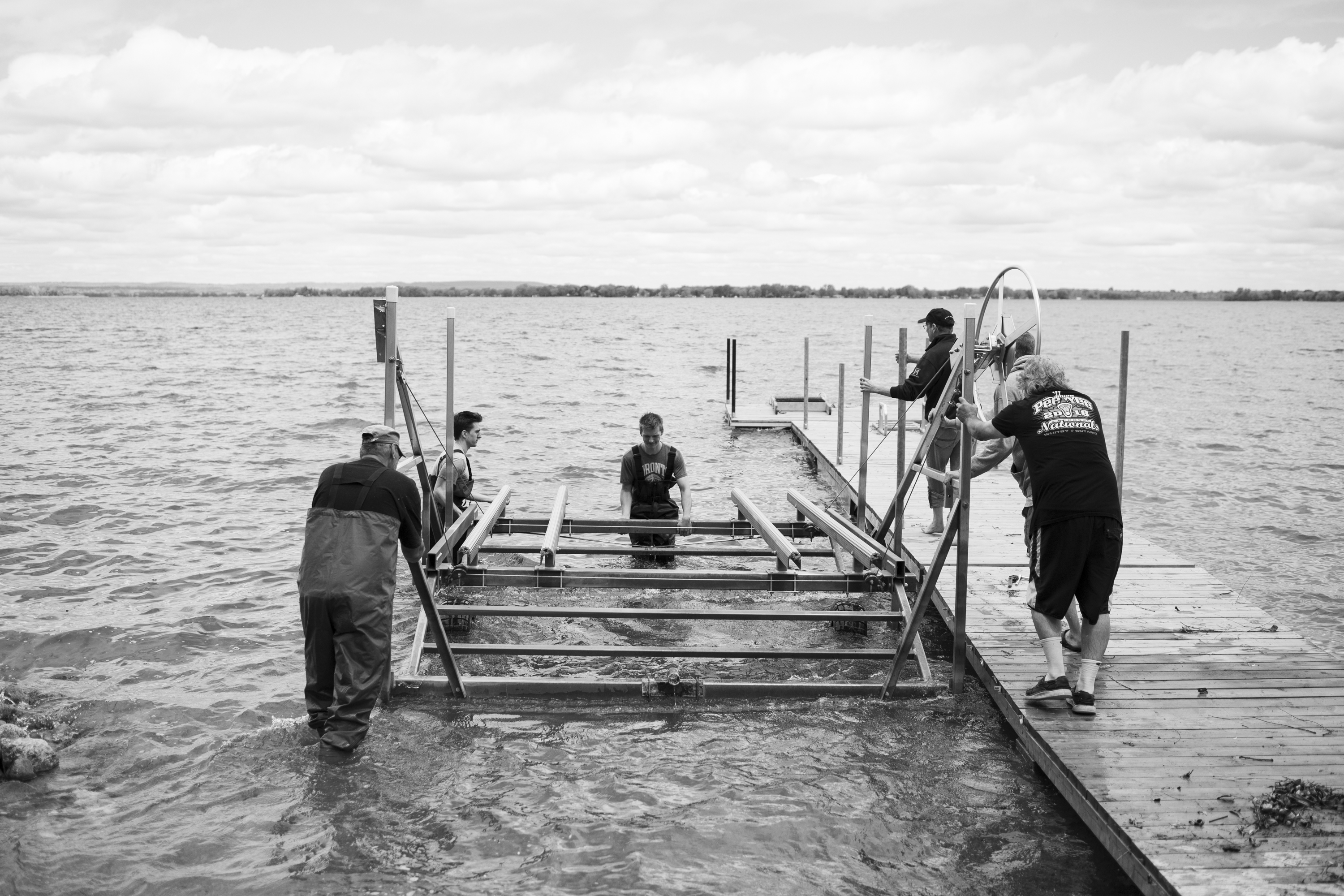The boys hard at work putting the dock in.
