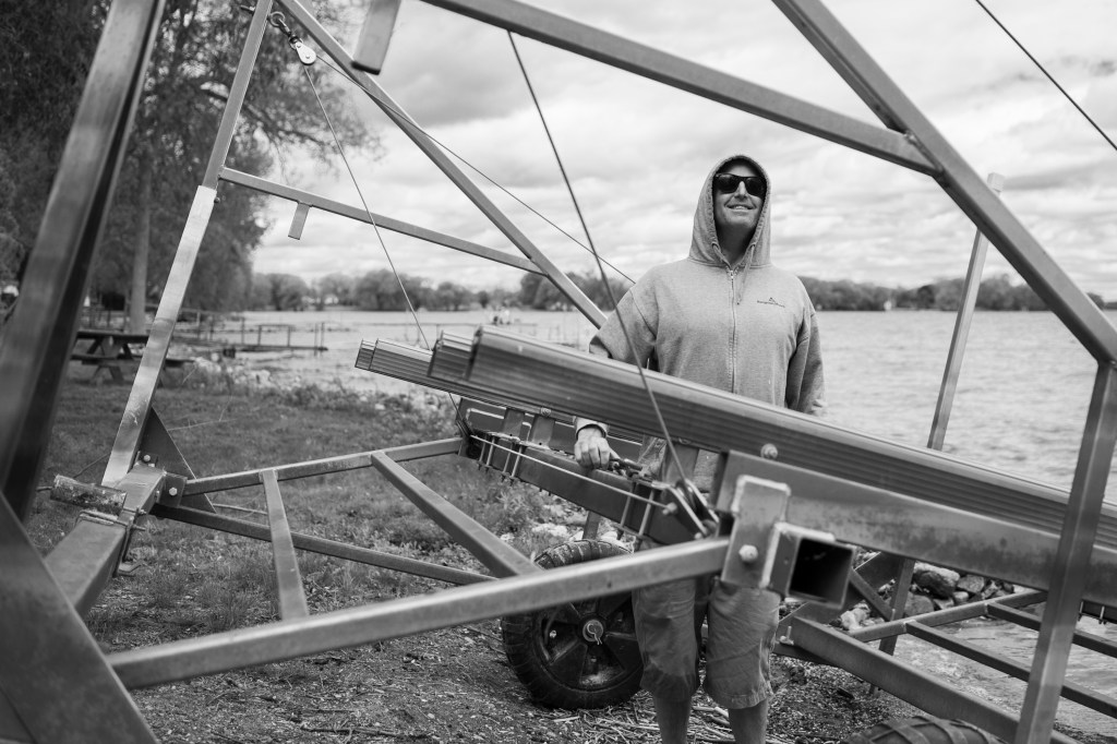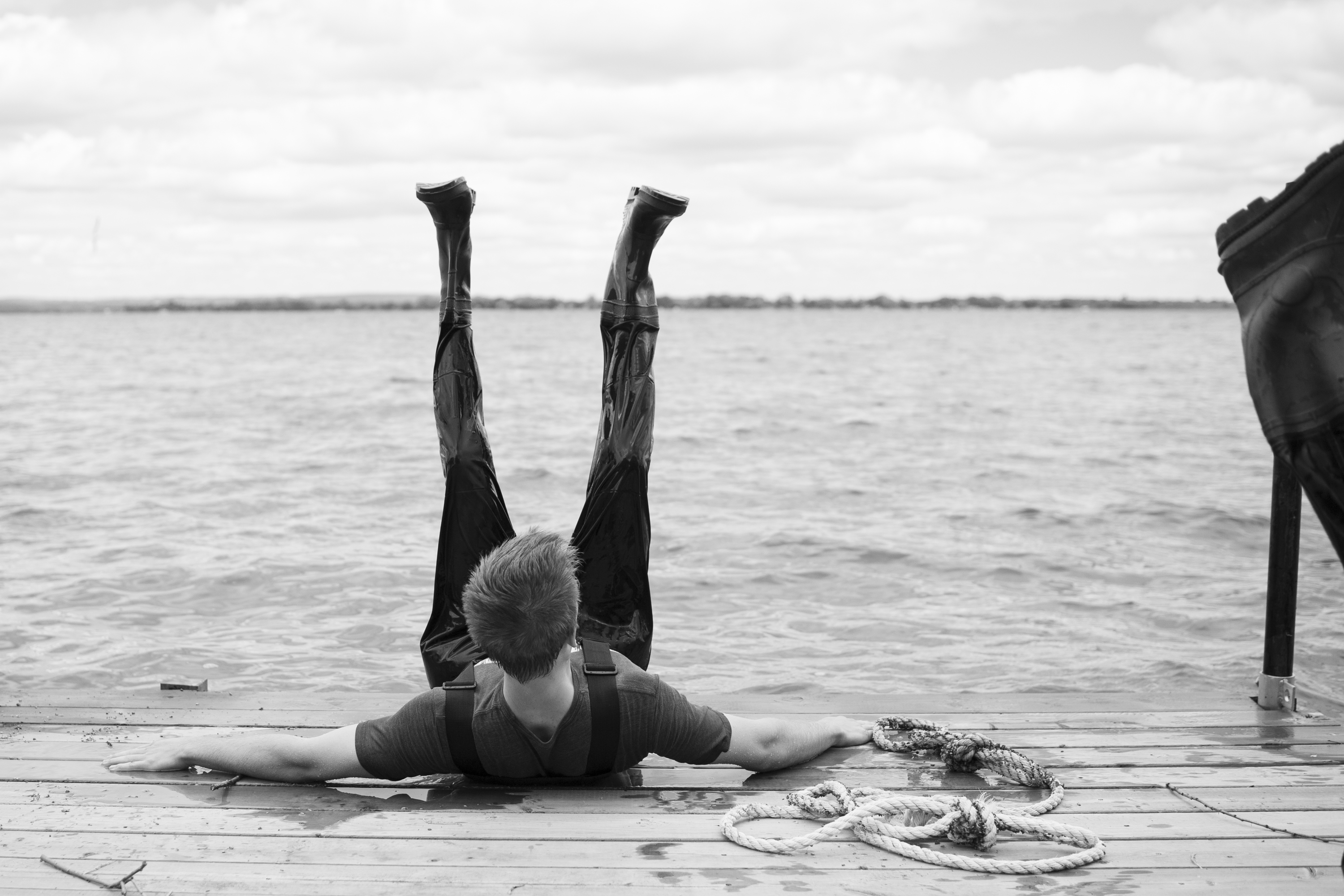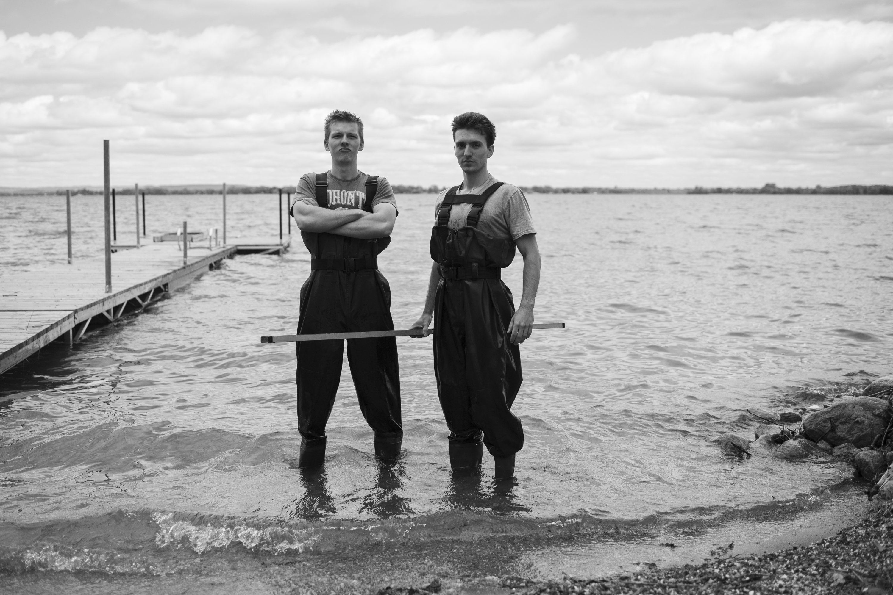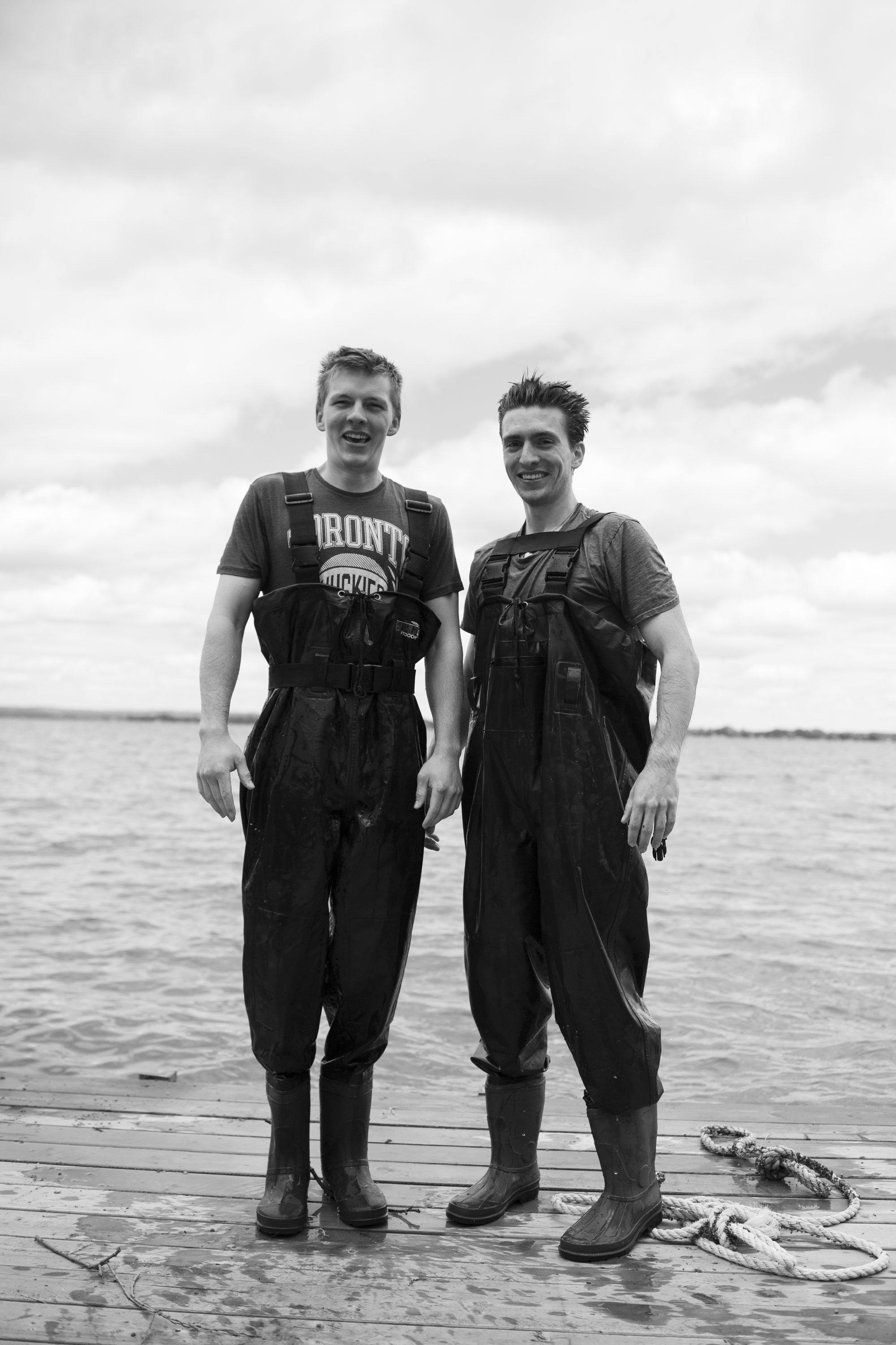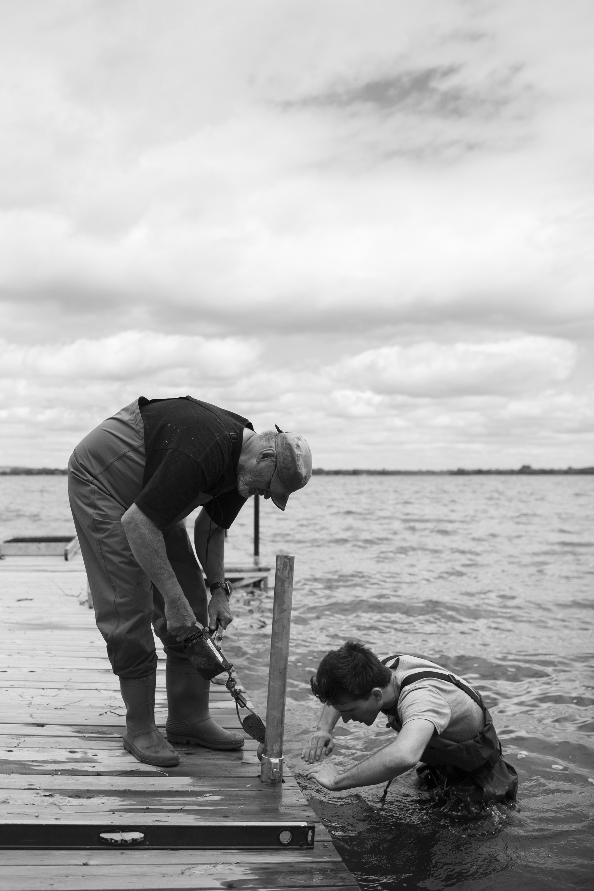 The boys hard at work putting the dock in.