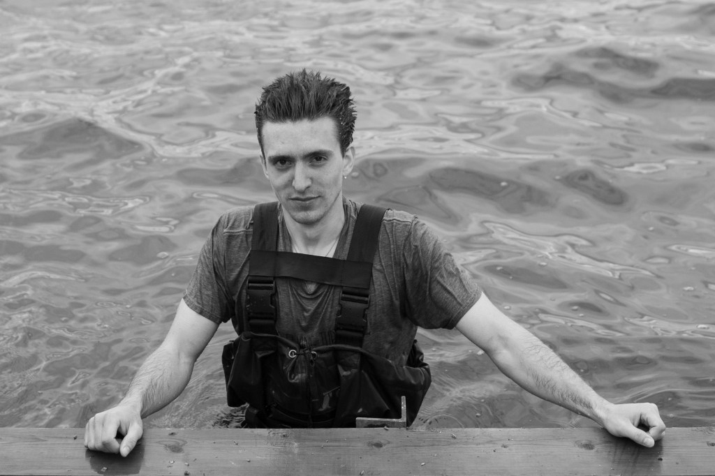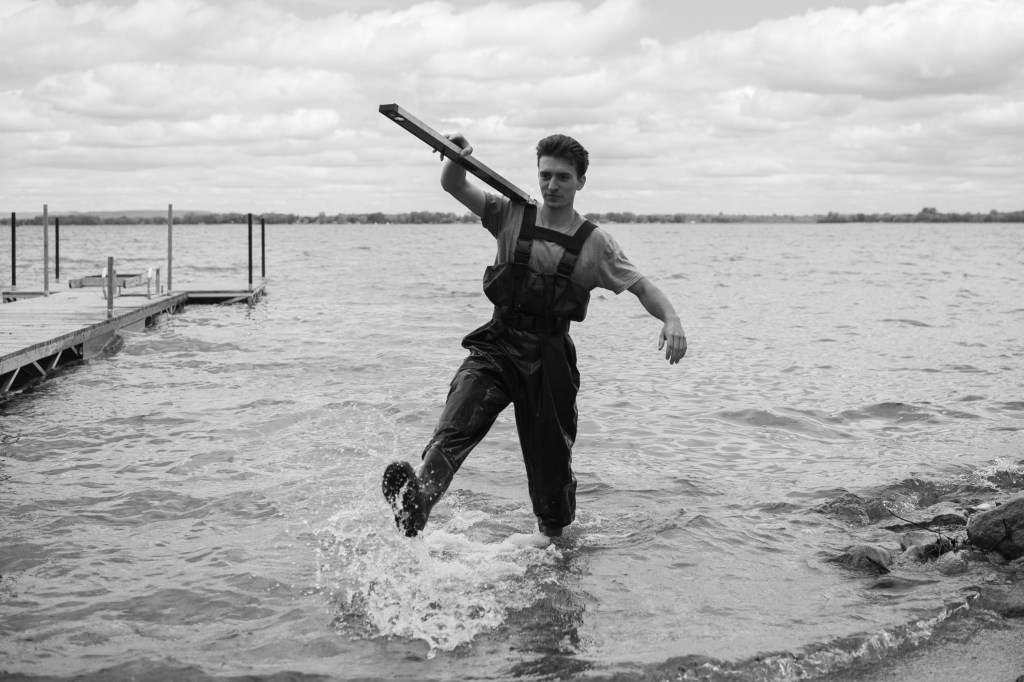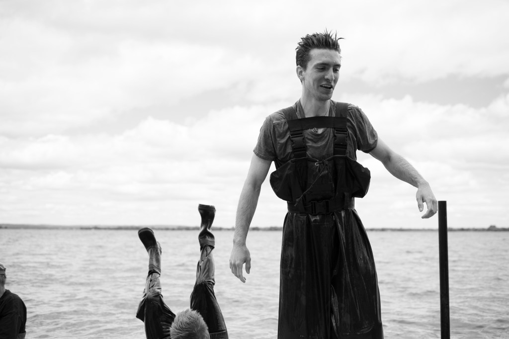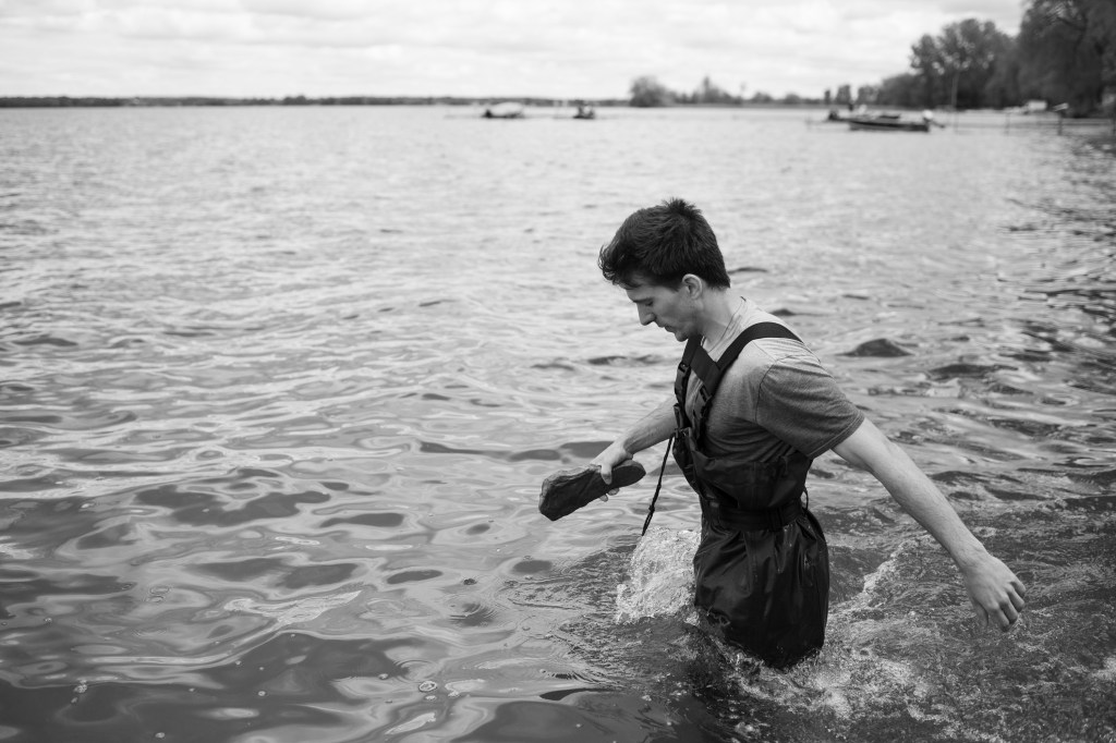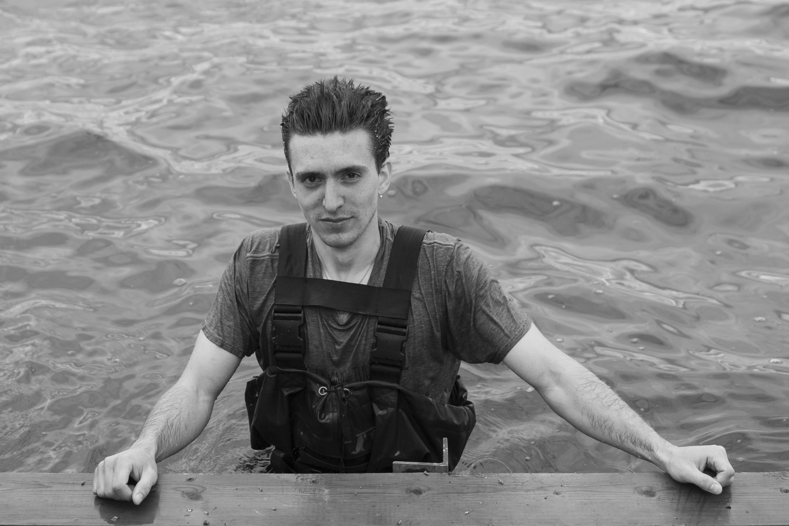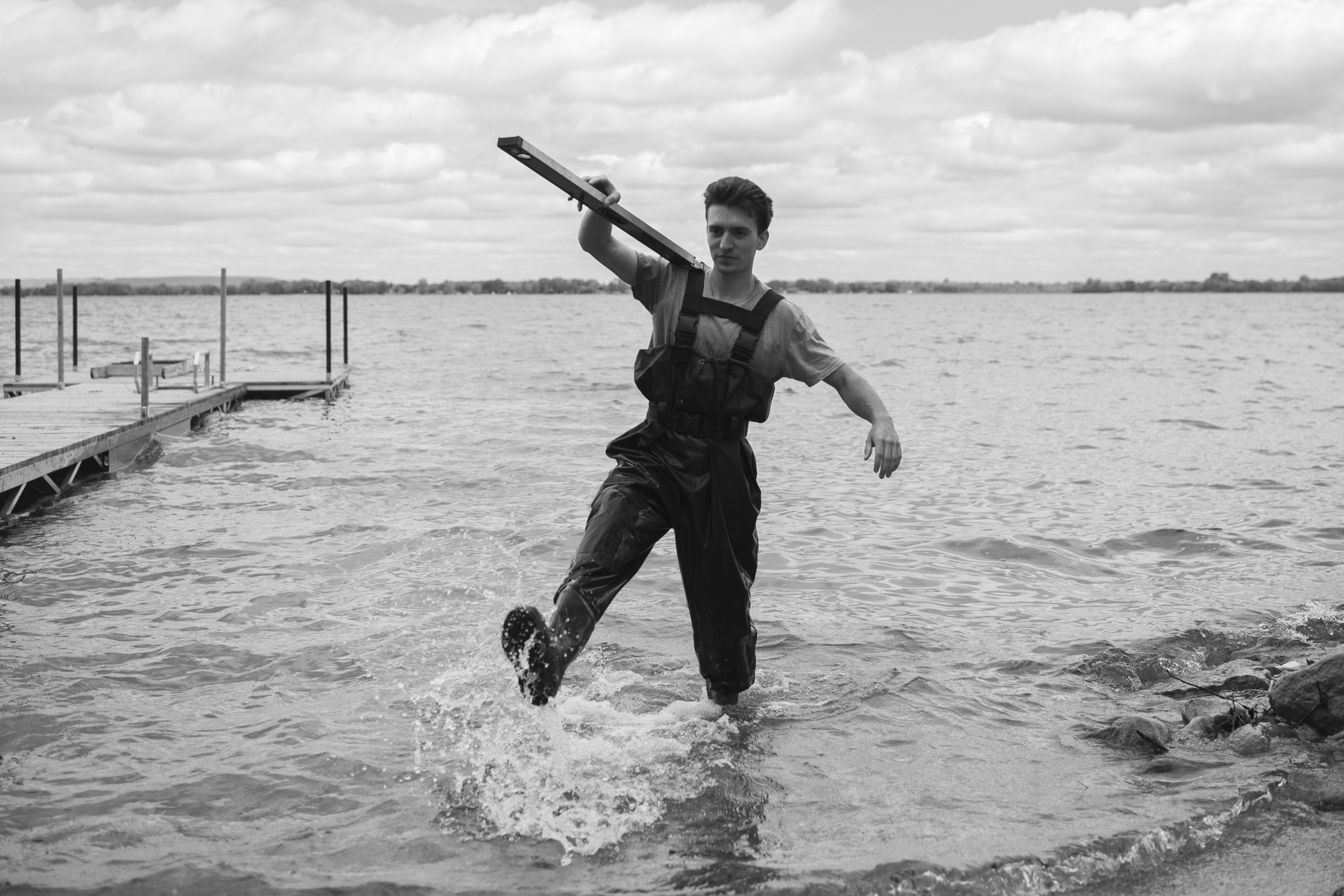 The boys hard at work putting the dock in.