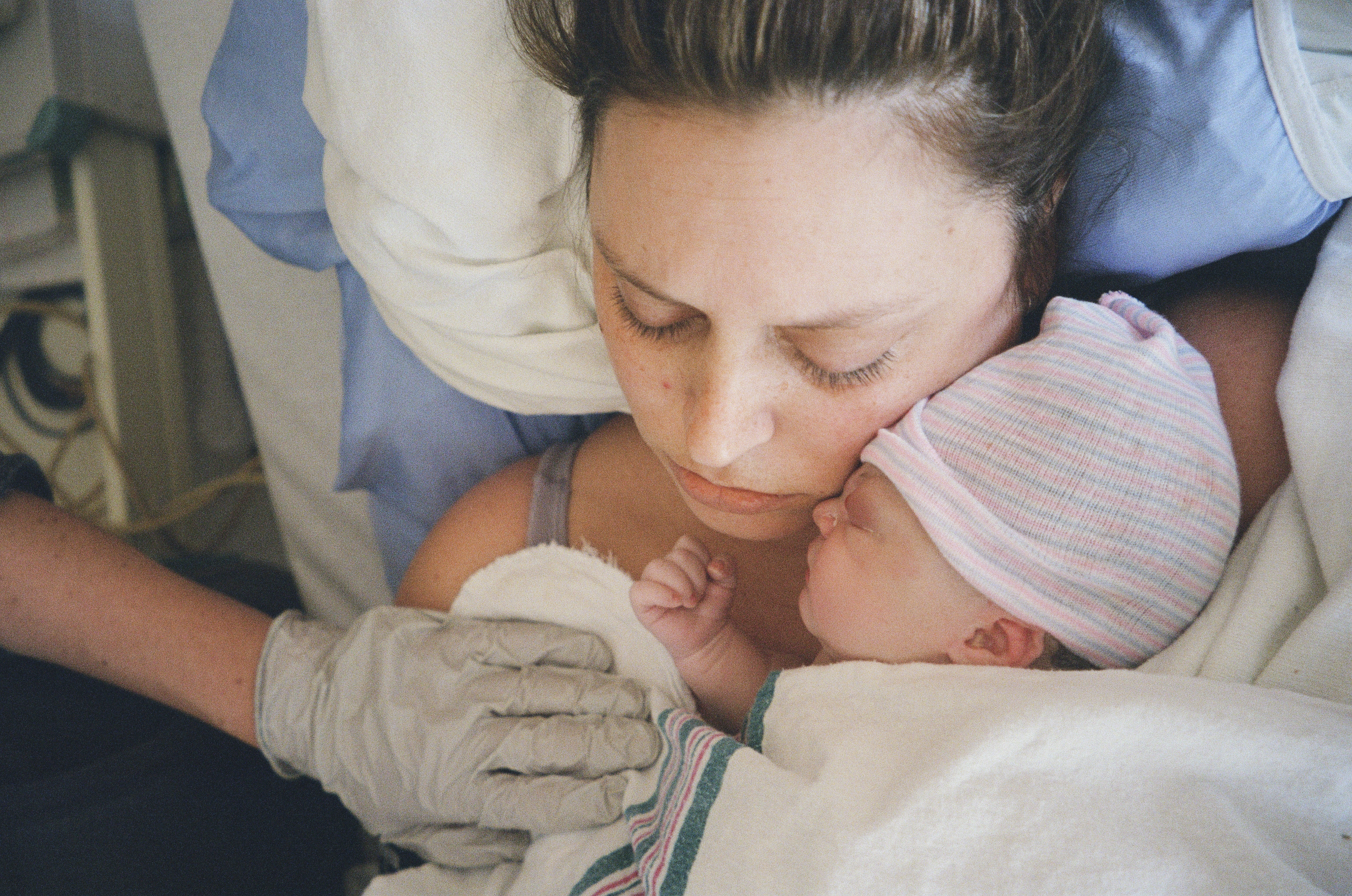 As soon as I agreed to the vacuum the room filled with people. Like, fifteen people. There was a huge surgical light fixed upon me and a strange male doctor between my legs. My husband, who had been right by my side until then, was muscled out of the way by strangers in smocks, and my legs were wrested apart by my midwife and a nurse. They cranked up the Pitocin to the maximum amount and attached the vacuum to my baby’s head. After the first contraction in this position I quickly realized I would not be able to put my legs down and rest between contractions as I had been. I was now split wide open until this baby came out. My mind started to unravel. I was losing it. I felt like a wild animal about to be slaughtered. I was ready to give up, but the contractions were almost constant now. After seventeen minutes of this constrained vacuum treatment, the doctor said it was time to cut the baby out. I was ready to agree to anything at that point, but my midwife and husband rallied for me and said that was my worst nightmare. Another contraction came mid-decision. My midwife slapped my face and head and yelled at me to push; that we did not go through a sixty-four hour labour to give it all up now. They jerked my legs open even wider and I pushed so hard I thought I was going to turn inside out when a miracle occurred. The baby was born.
