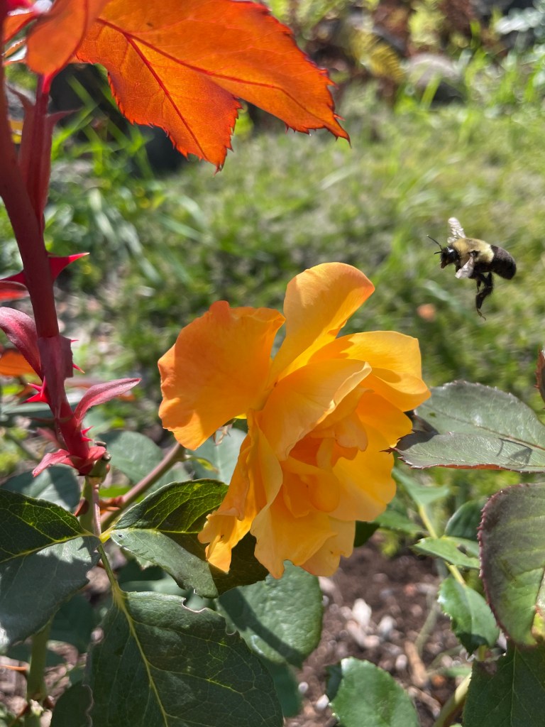 Last Summer our ‘Strike it Rich’ yellow roses won 1st Prize at the Port Hope Fair. Last Winter the Ice Storm all but killed the 2-Year-Old rosebush of five feet in height. I scraped back the bark looking for that tender light green sign of life beneath the bark and kept on finding brown. The bush was hacked back to just one root standing. I was thinking about pulling it out. Then I found the light green sign of life on one inch of root deep in the centre. I decided to give it a chance. This Summer the ‘Strike it Rich’ roses won 1st Prize at the Roseneath Fair! Never give up on a winner. They smell even better than they look.